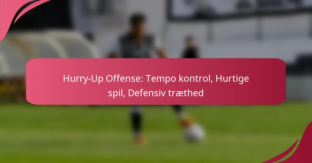 Hurry-up offensiven er en dynamisk strategi i fodbold, der accelererer spillets tempo, hvilket gør det muligt for hold at udføre hurtige spil og lægge konstant pres på modstanderens forsvar. Ved at kontrollere tempoet søger denne tilgang at udnytte defensiv træthed og skabe fordelagtige mismatches, hvilket i sidste ende forbedrer scoringsmulighederne og opretholder offensiv momentum.