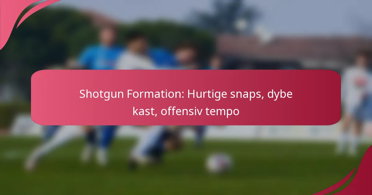 Shotgun-formationen er en strategisk offensiv opstilling i amerikansk fodbold, der placerer quarterbacken flere yards bag centeret, hvilket letter hurtige afleveringer og dybe kast. Denne opsætning forbedrer ikke kun quarterbackens synlighed og reaktionstid, men øger også det samlede offensive tempo, hvilket muliggør hurtig udførelse af spil, der kan overraske forsvaret. Ved at udnytte hurtige snaps og dybe kast kan hold skabe scoringsmuligheder og effektivt udnytte defensive svagheder.