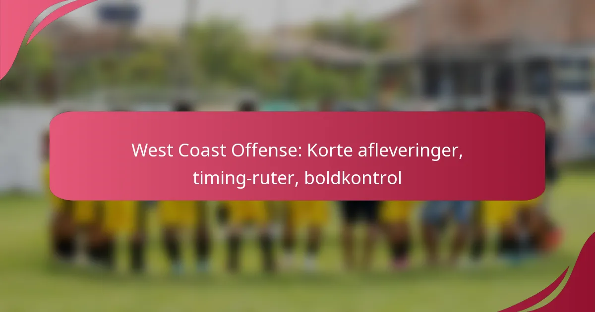 West Coast Offense er en strategisk fodboldtilgang, der prioriterer korte, hurtige afleveringer, timing-ruter og effektiv boldkontrol. Ved at fokusere på høj-effektivitet afleveringer og minimere boldtab, gør dette system det muligt for hold at opretholde boldbesiddelse og diktere spillets tempo. Succesen med denne offensiv afhænger af præcis timing og nøjagtige kast, hvilket muliggør vedholdende offensive angreb og konstant bevægelse ned ad banen.